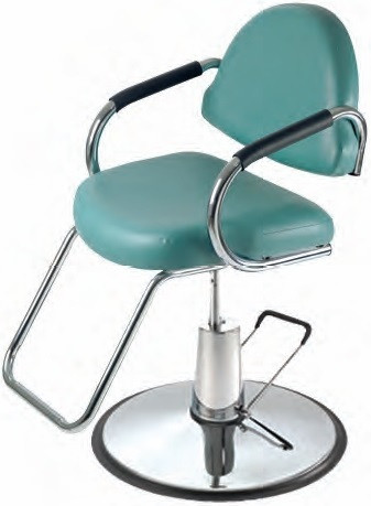 Loading... Please wait...The 5706 Nina styling chair has a rounded seat cushion and a flat, suspended back cushion supported by the armrests. Manufactured with industrial foam and 7 ply Virginia Birch Wood, inset screws, quality vinyl, double stitched. Chrome armrests have a thin, black rubber cover wrapped around them for a layer of softness. Separated back and seat cushions allow for easy cleanup of hair clippings. 350 lbs weight capacity and 3 year warranty on the hydraulic base. Available in 35 colors standard, or upgrade to Italian colors or provide your own material. Ask your sales rep for more details and promotions!