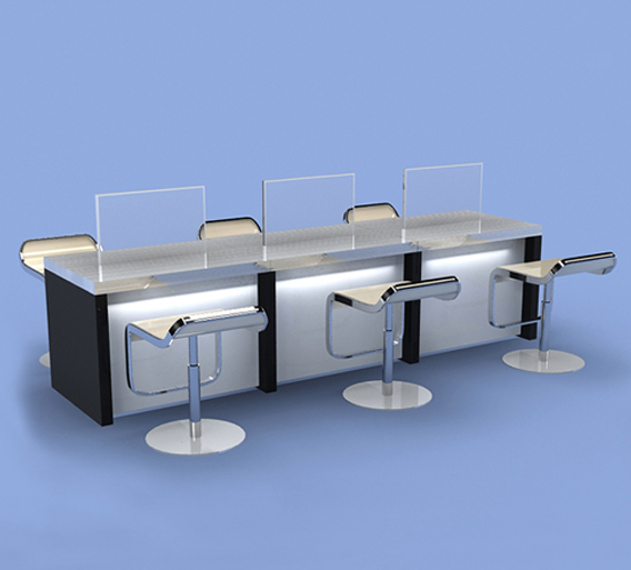 The Spectrum Color Application Table 12 Feet Wide, Chrome Surround Mirrors