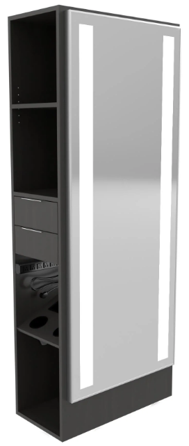 This island station makes multi-stylist setups feel organized and intentional. Dual-sided access lets two professionals work back-to-back without crowding, while spacious drawers and cabinets on both sides keep products neatly sorted and easy to grab. Full-extension drawers glide smoothly and offer ample storage for color bowls, brushes, shears, and finishing products.