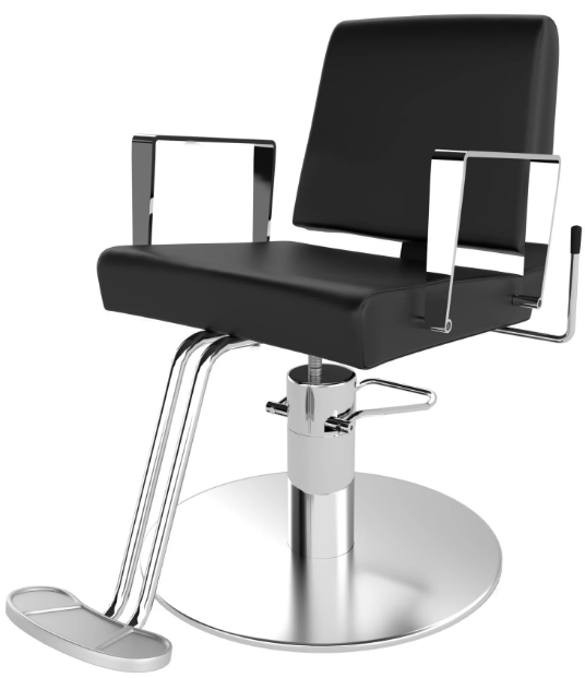 Loading... Please wait...The Collins E310 Lila All Purpose Salon Chair matches modern with charm. Thick padded back and seat cushions feature sleek lines and offer excellent client comfort. The 2" floating back makes for easy escape and cleanup of hair trimmings. The well thought out design of the chrome armrests add a touch of class to bring it all together. Lever on side of chair controls back recline for smooth transition for laying client back. Comes standard in 3 colors - Flatt Black, Champagne and Saddle - or several other colors are available for an additional cost. Priced for standard #4250 round hydraulic base with 5 year warranty and standard 1" chrome tubular footrest (shown in upgraded #4050DD flat round hydraulic base and #10802 Easy Step T-Bar footrest, each for an additional cost). Additional hydraulic bases and footrests available for an additional cost.